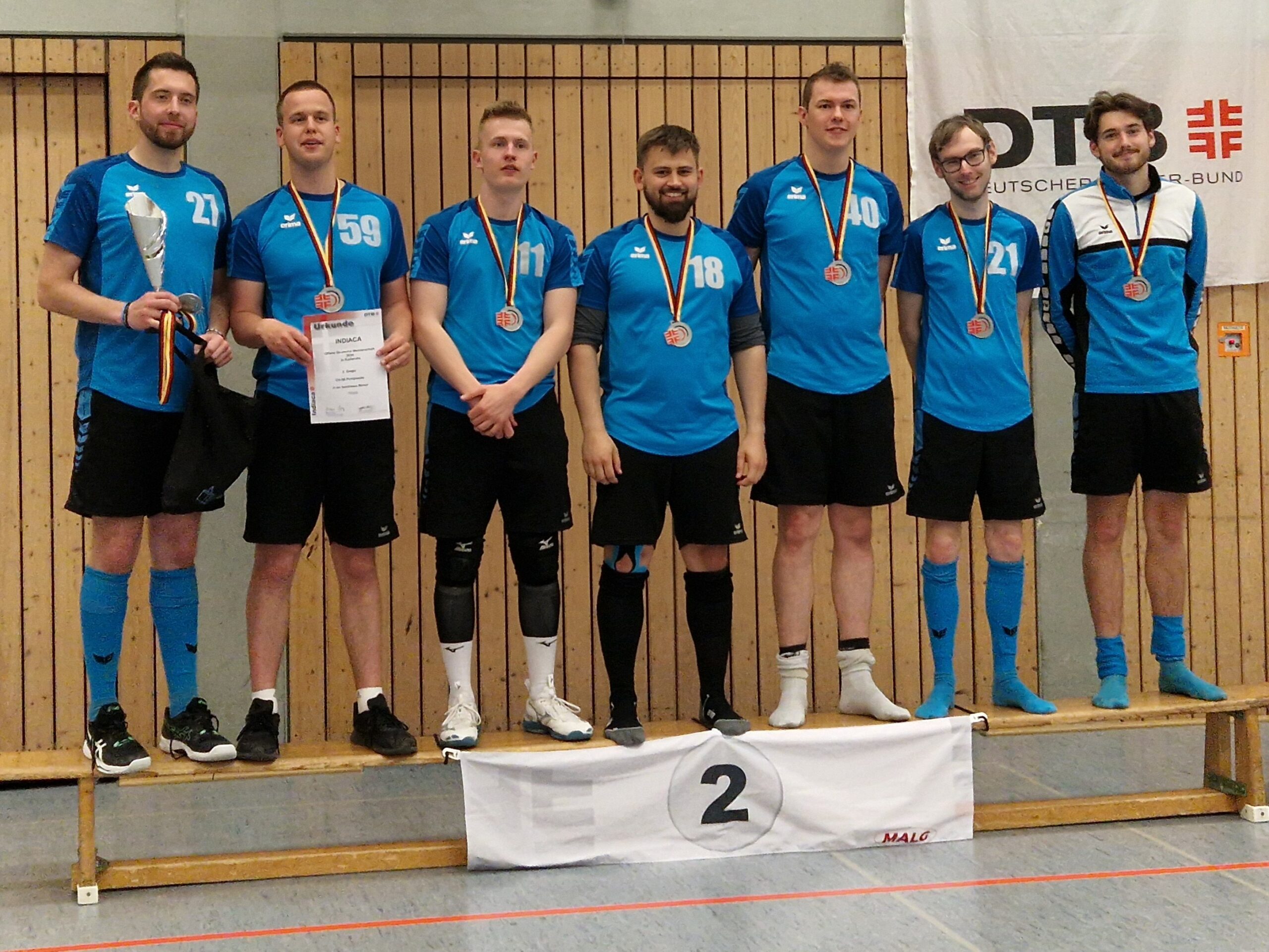 Parallel spielte die Männermannschaft und erwischte einen sehr guten Start. Nach zwei teilweise umkämpften aber verdienten 2:0 Siegen war bereits nach zwei Spielen der Einzug ins Halbfinale perfekt. Somit konnten im abschließenden Vorrundenspiel Stammspieler geschont und verschiedene Aufstellungen ausprobiert werden. Im Halbfinale traf man auf die Mannschaft aus Rußheim, die in ähnlicher Zusammenstellung im Vorjahr den Titel gewann. Nach einem verlorenen ersten Satz und Rückstand im zweiten Durchgang gelang eine Steigerung, die die pivitsheider Mannschaft beflügelte und die rußheimer Spieler zunehmend hemmte. Nach Gewinn des zweiten Satzes wurde zu Beginn des dritten Satzes dank fehlerlosem Spiel ein Polster von zehn Punkten herausgespielt, welches bis zum Ende nicht mehr abgegeben wurden. Somit war der erste Finaleinzug seit 2005 erreicht. Im Finale traf man auf die Mannschaft aus Kamen. Beiden Mannschaften war der neunstündige Turniertag anzumerken und es schlichen sich einige Fehler ein. Das bessere Ende hatte die Mannschaft aus Kamen für sich. Die Männermannschaft freut sich dennoch über einen sehr guten zweiten Platz.
