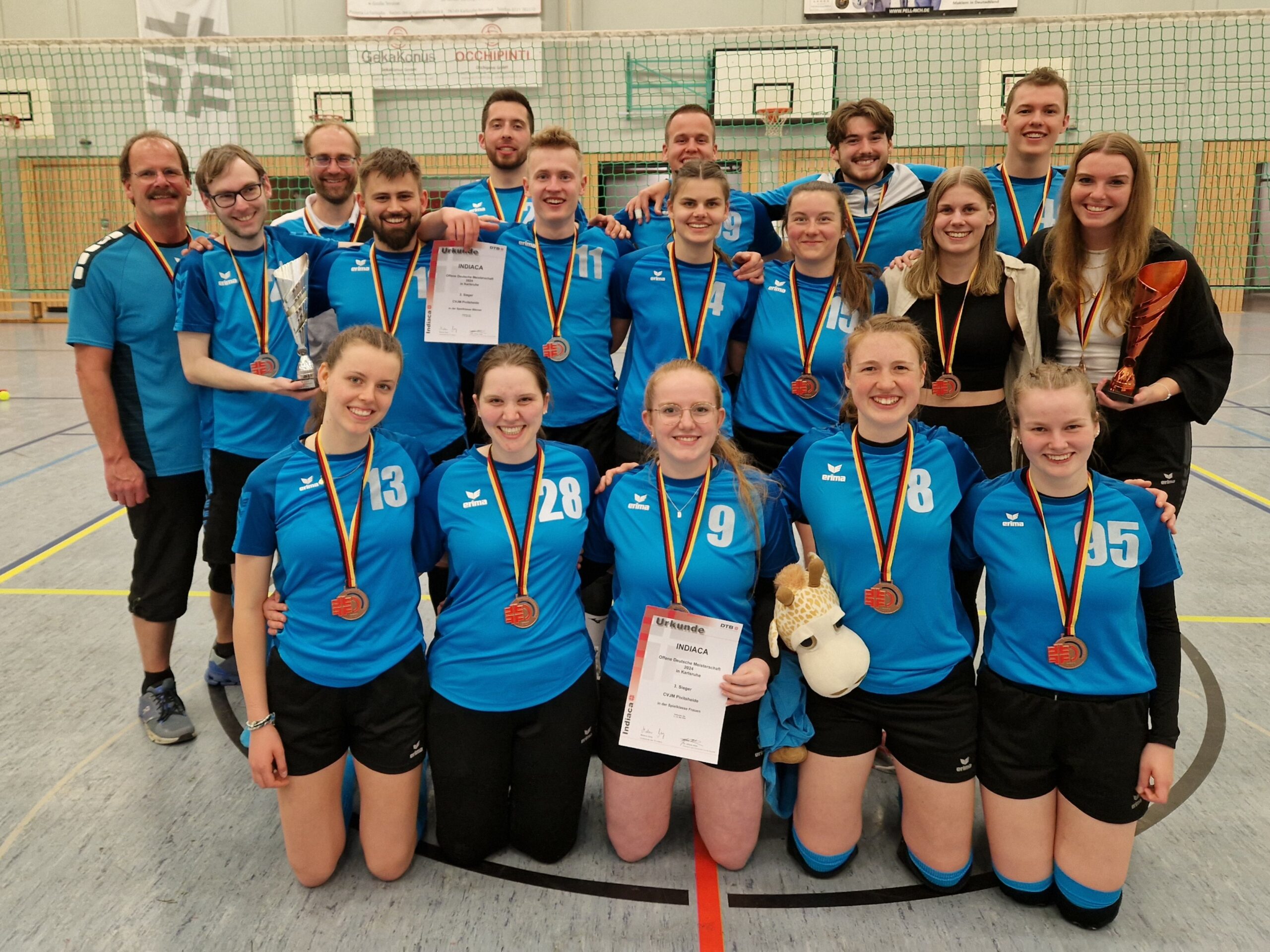 Am Wochenende nach Himmelfahrt fand die Deutsche Meisterschaft der Erwachsenen im Indiaca in Karlsruhe statt. Die Mannschaften des CVJM Pivitsheide sind mit dem ehrgeizigen Ziel, mit allen drei Mannschaften die Halbfinals zu erreichen angereist.